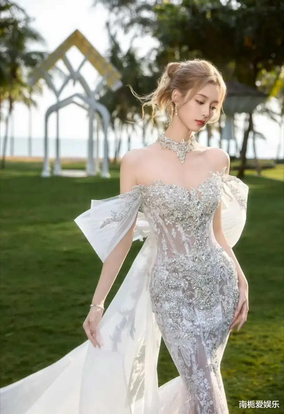 高潮出现在两套造型与婚礼当日主纱的对比中。此前她试穿12套重工礼服,虽华丽却因肩围不合、腰线模糊等问题被指“淹没身材优势”。三亚这套鱼尾裙,以去繁就简的方式彻底释放她的个人特质。超70%网友在投票中认为“比婚礼主纱更惊艳”,更有大量女性留言:“终于看到不靠蓬裙也能美出天际的婚纱了。”