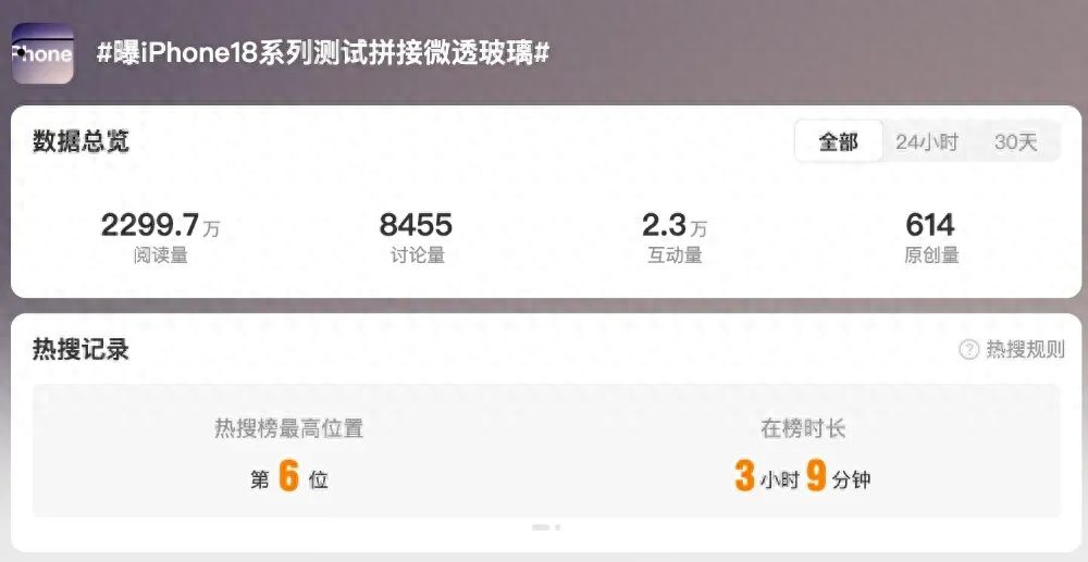 今天,#曝iPhone18系列测试拼接微透玻璃# 这一话题登上了热搜榜单,并吸引了大量用户关注。