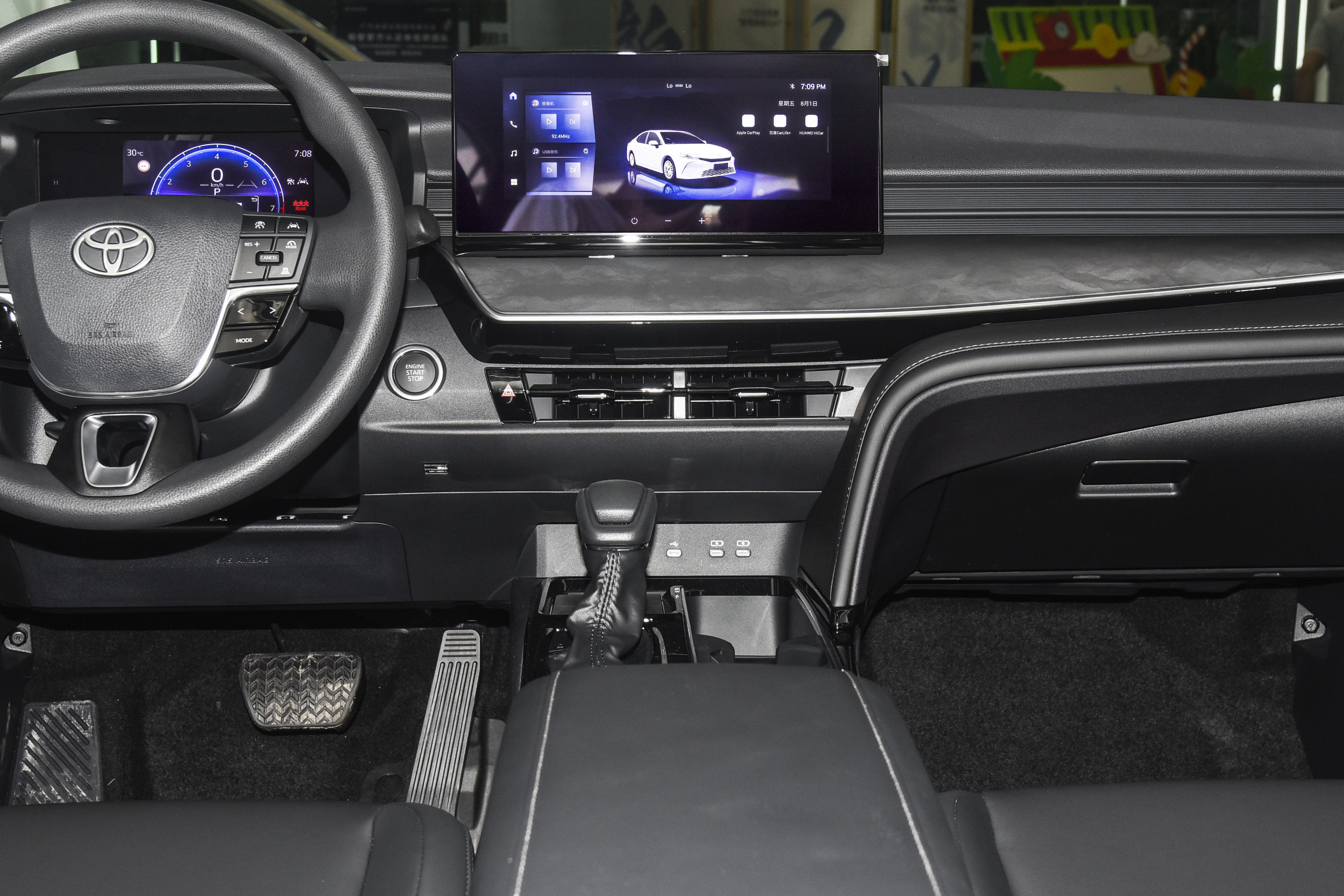 凯美瑞的车身长宽高分别为4915mm、1840mm、1450mm,轴距长度为2825mm。无论空间还是舒适性都不错,而且做工用料相比老款来说更上档次了,轻易摸得到的地方均采用真皮包裹,摸起来柔软细腻,同时还配有全车多层隔音玻璃、手机无线充电、氛围灯、丹拿音响等配置。前排座舱的设计也立足于年轻用户的审美,传统T型对称式的布局加上悬浮式多媒体屏幕,中控屏幕的尺寸达到了12.3英寸,液晶仪表盘的尺寸同样是12.3英寸。