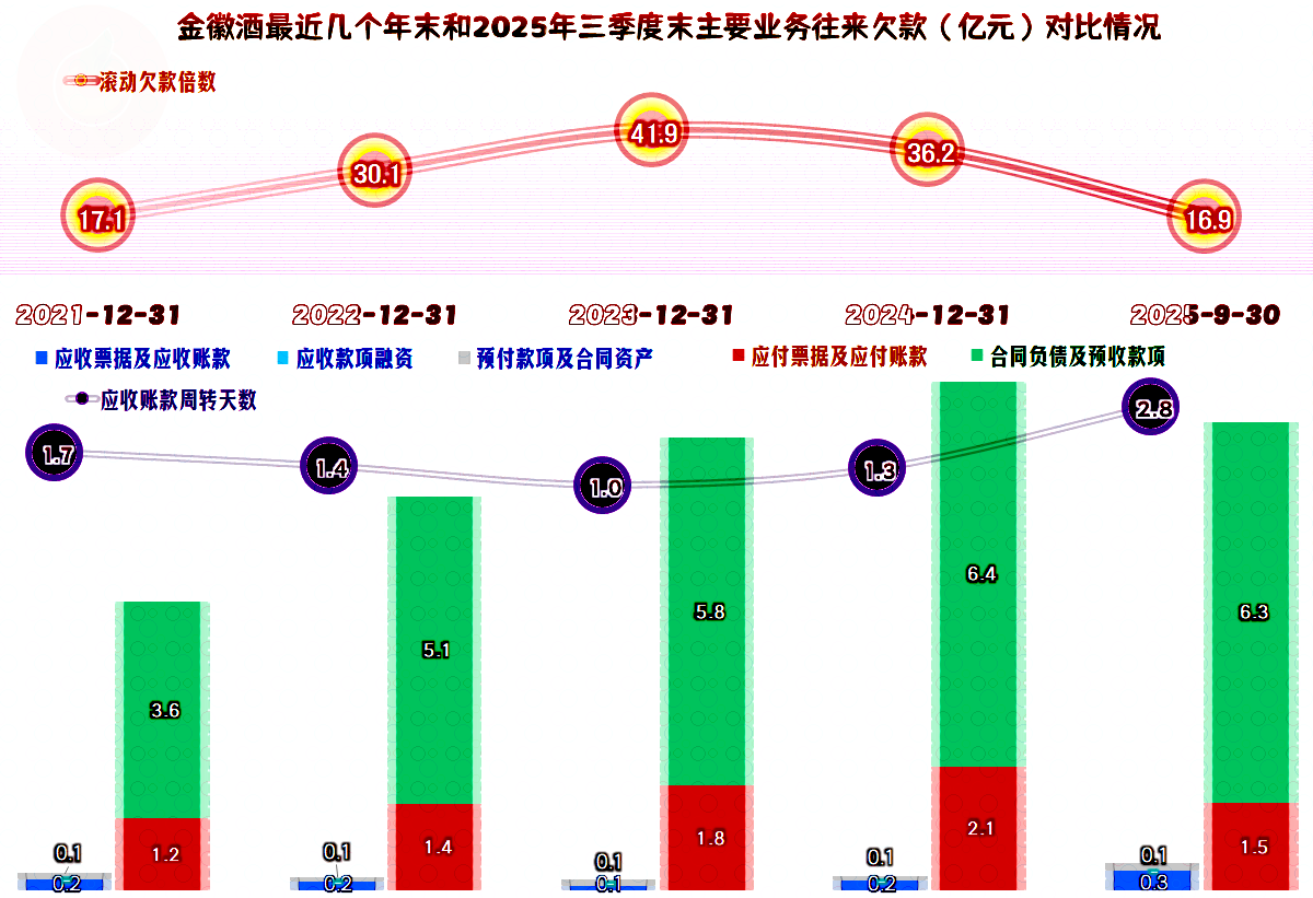 金徽酒并非没有应收账款,不过,其两三天的应收账款周转天数,说明几乎不会向主要的经销商提供欠款。其预收的货款(在“合同负债”项目中)规模在2024年及以前持续增长,直到2025年三季度末才略有下降,后续期间当然还有下降的可能性,特别是有些同行已经开始允许经销商部分欠款了,不跟的话,很容易影响销量。