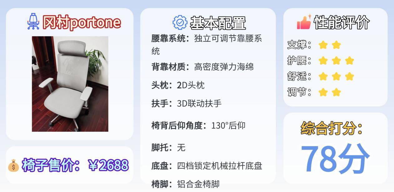 Portone主打“稳定、好坐、适合长时间办公”。它的宽大腰托和弧形靠背组合,能提供柔和但稳定的支撑,整体坐姿自然舒展。