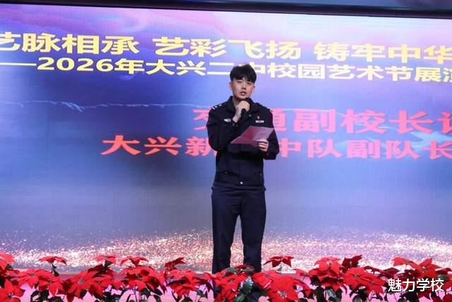 2026年4月17日下午,北京市大兴区第二中学礼堂内灯光璀璨、气氛热烈,“艺脉相承,艺彩飞扬,共绘时代新篇章”校园艺术节展演在此隆重举行。学校领导、副校长、师生代表与家长齐聚一堂,在艺术的共鸣中,共同见证了一场融汇青春、美育与协同育人的生动实践。