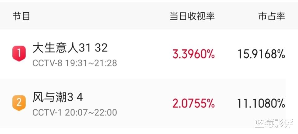 不过好在眼下央视又上了一部新剧《风与潮》,该剧不仅收视长虹,而且口碑也很不错,豆瓣评论区好评如潮。