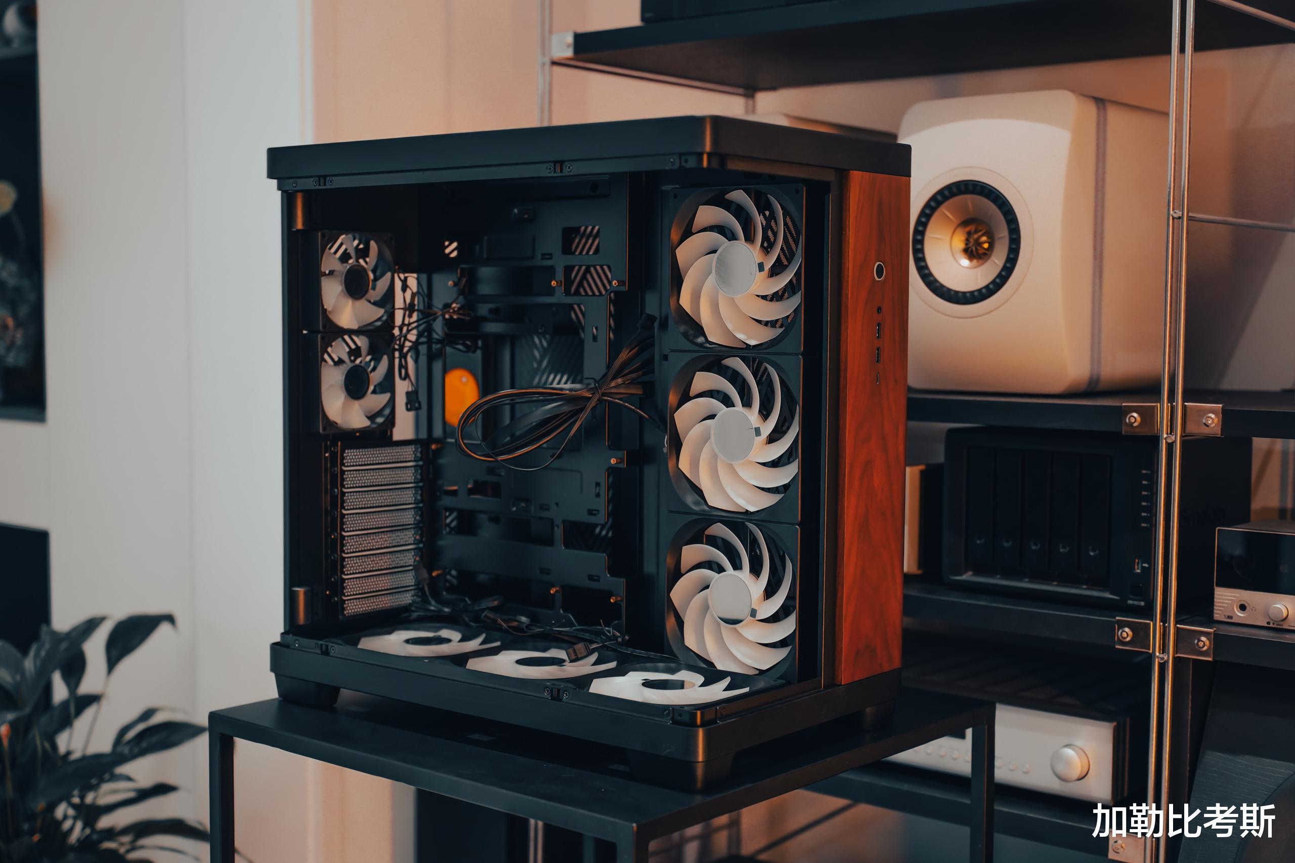 2、乔思伯TK-4黑色WOOD版机箱乔思伯TK-4是TK系列目前尺寸最大、定位最高的型号。这款黑色 WOOD 版本最大的特点,是在前面板加入了一块北美黑胡桃实木,配合原本的铝合金框架,把科技产品做出了家具的质感。相比于普通的全黑机箱,这种木质纹理能更好地融入居家环境,第一眼看上去档次感确实比较高。