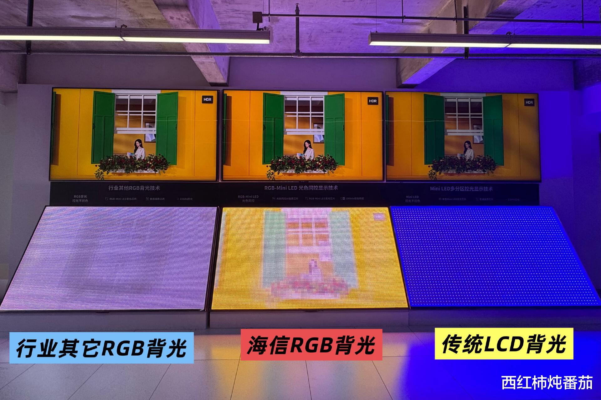 因此, RGB-Mini LED电视就是改变了背光源色彩,且将背光进行了分区控制的LCD电视。既「控光」,又「控色」,对应海信宣传口所谓的「光色同控」。