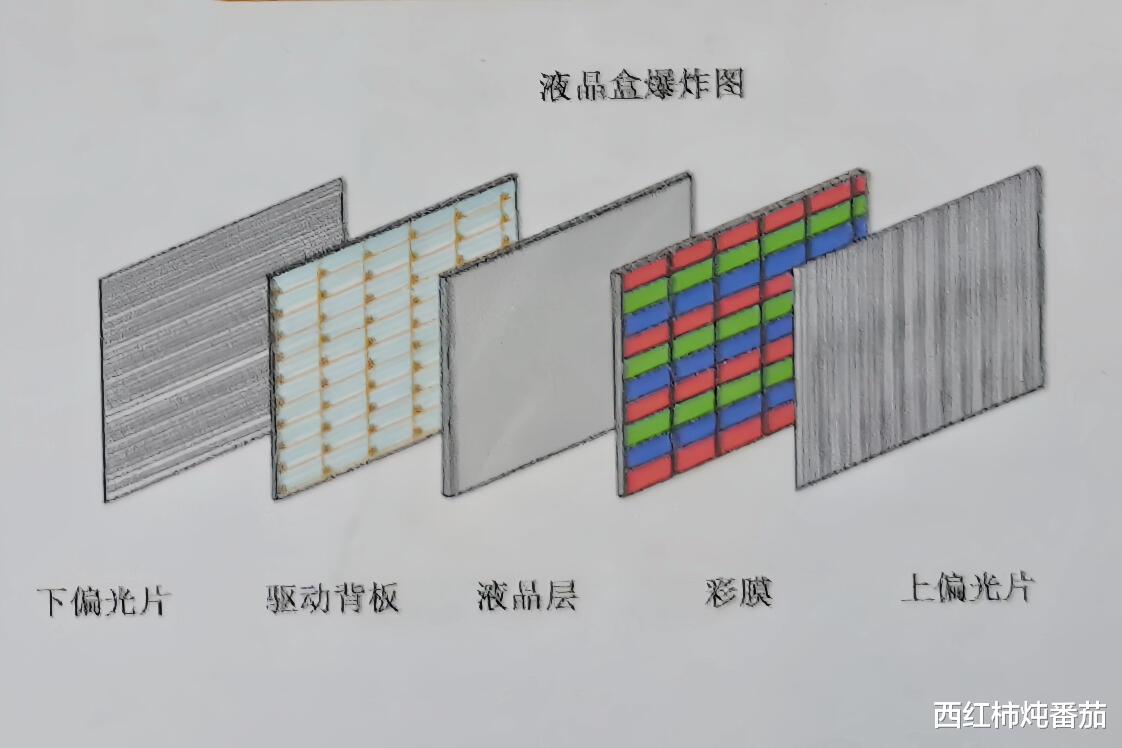 液晶盒则可以细分为下偏光片、驱动背板、液晶层、彩膜以及上偏光片。