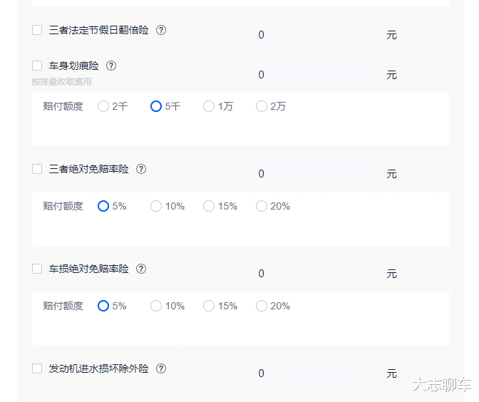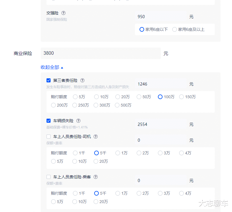 第一件:保险只要买4+1,很多人提车时,压根不会怎么去留意保险的事情,然后,被狠狠地宰了一刀,你记住一句话,保险只要四大项+1就可以了,分别是车损险、交强险、三者险和驾乘险,然后叠一个医保外用药即可,其他多余的保险一改不用,别浪费钱了,哦对,切记是驾乘险,千万别听人说什么座位险,那是大坑。