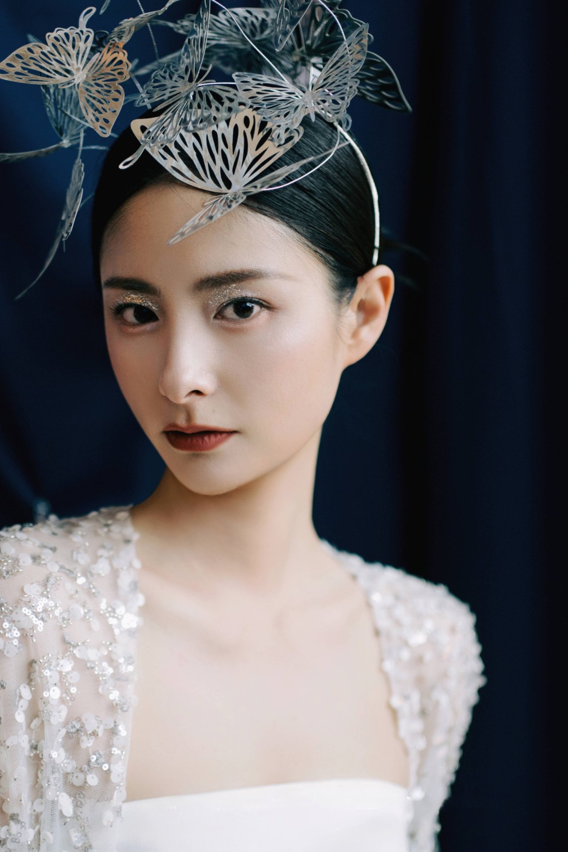 每一件婚纱作品都是传统与现代的完美对话:细腻的布依刺绣在婚纱裙摆上勾勒出稻穗、蝴蝶等吉祥纹样,寓意着丰收与幸福;蓝白相间的蜡染面料经过现代剪裁工艺的重塑,呈现出简约大气的廓形;精致的银饰头饰与婚纱的蕾丝花边巧妙呼应,既有民族文化的辨识度,又不失现代婚纱的浪漫典雅。