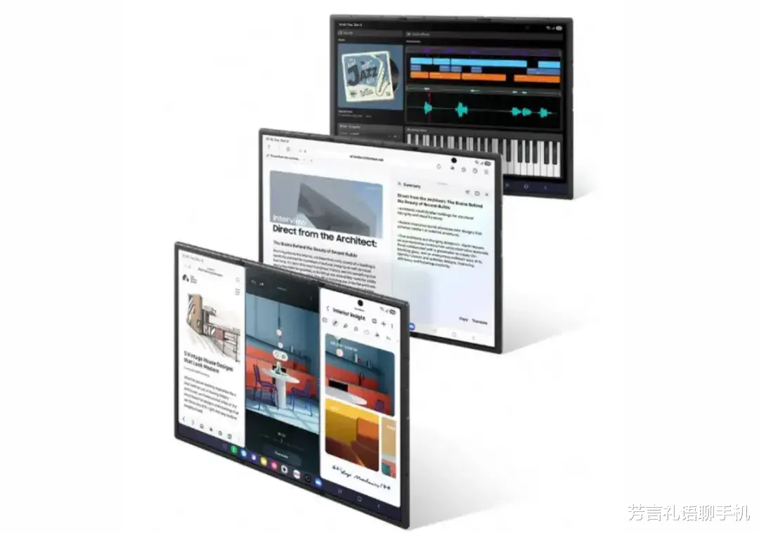 在同屏多任务并行方面,三星GalaxyZ TriFold的10英寸内屏展开后,相当于将三台6.5英寸智能手机并排展示,可同时在屏幕上并行三个应用程序。也可通过多窗口视图,自由调节各个应用的尺寸。