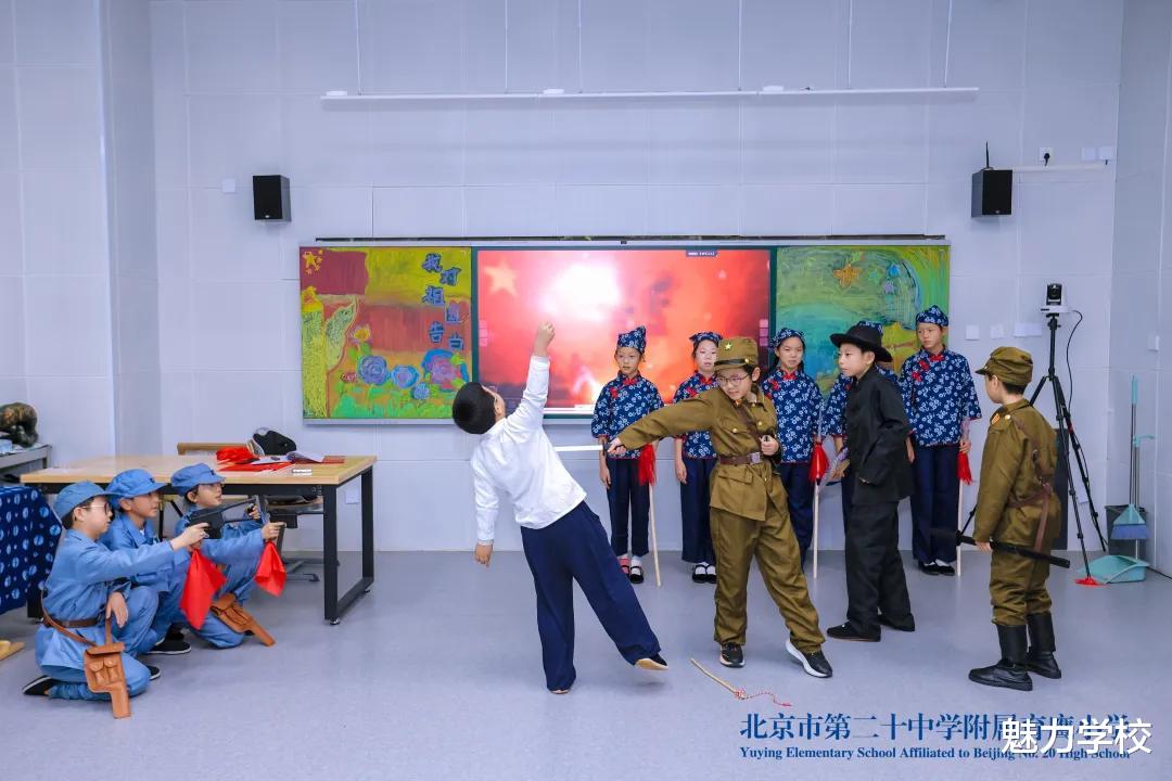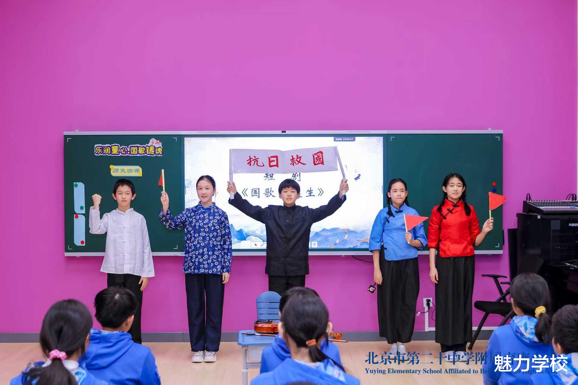 田甜老师执教的高段跨学科课程 《乐润童心 国歌铸魂》,以《国歌》为核心载体,深度融合多学科教学元素,打造沉浸式爱国教育课堂。课堂上,学生跟随 AI 数字人穿越时空,走进国歌诞生的抗战战壕,真切感知烽火岁月的铿锵底色;各小组以短剧形式生动演绎 “冒着敌人的炮火” 的壮烈场景,让历史画面跃然眼前;大家还尝试用中英双语拆解歌词内涵,解码字里行间凝聚的民族力量。在旋律与故事的交织浸润中,学生不仅掌握了规范的国歌演唱礼仪,更将 “以歌护家国” 的赤诚热忱,悄然融入日常言行之中。