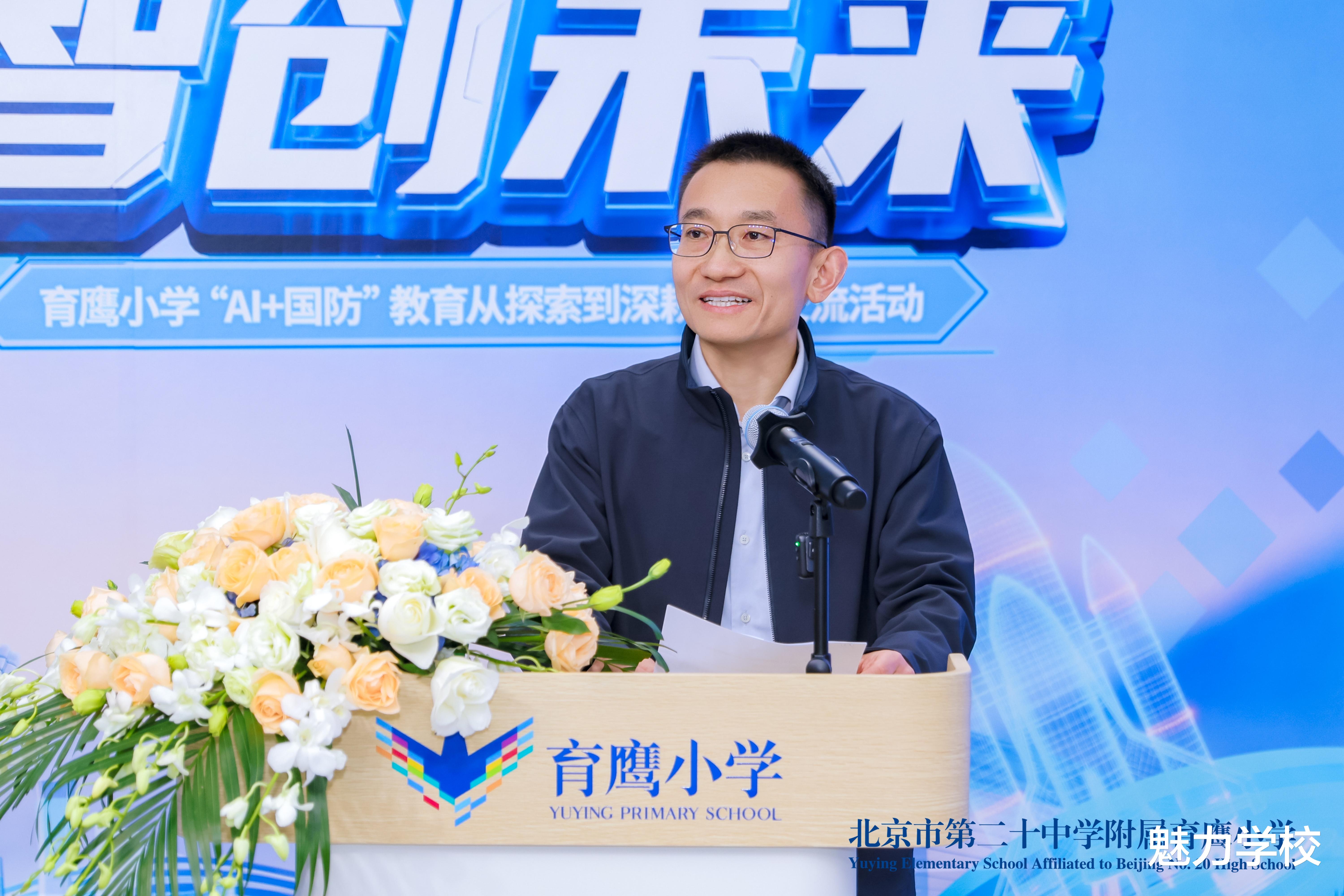 本次活动旨在搭建交流平台,分享阶段成果,汇聚多方智慧,共同探索面向未来的教育新生态。活动伊始,北京市数字教育中心田鹏主任致辞。田主任充分肯定了学校的先行探索,他指出,人工智能不仅是教学工具,更是推动教育深刻变革的赋能者。“AI+国防”的实践,生动体现了科技强教与立德树人的结合,在培养学生家国情怀与AI素养方面展现出独特价值,也为区域教育的数字化转型提供了切实可行的范例。