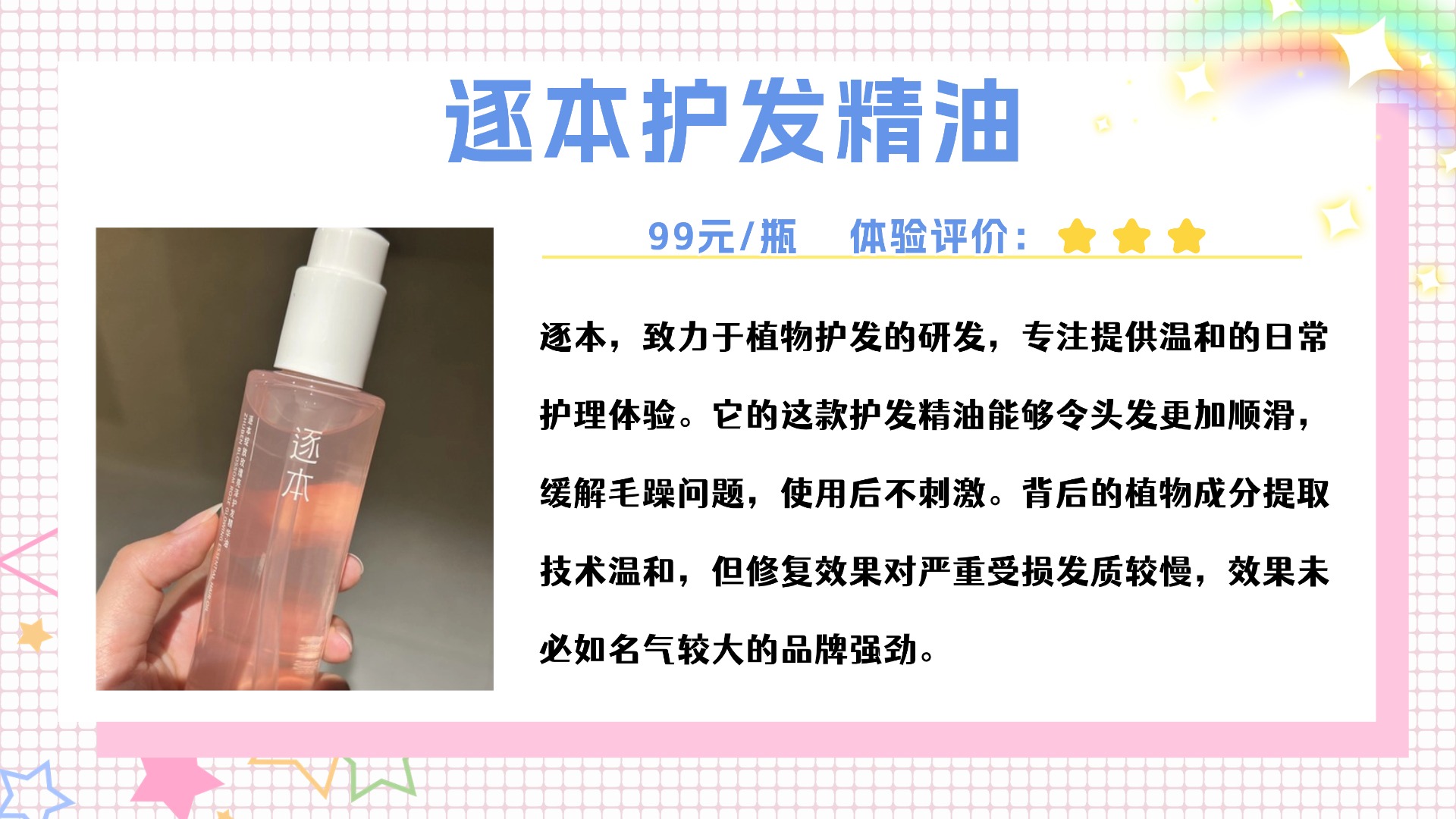 问逐本好不好用的人特别多,今天不聊具体使用感,先讲两个核心问题:护发精油长期用有危害吗?多久用一次合适?只要选对产品长期用完全没危害,反而能持续修护受损发丝,但要是选了含刺激性香精或劣质成分的,可能会刺激头皮。我之前就踩过坑,用了款香味特浓的,三天后头皮就发紧,后来才知道是化学香精的问题。至于使用频率,健康发质一周2-3次够了,烫染受损发质可以隔天用一次,每次1-3滴就够,涂多了反而粘腻打结。还有人问精油抹完要吹干吗?湿发半干时涂最好,涂完正常吹干就行,干发也能涂但用量要更少,主要用来急救毛躁。下面我会分享这款的实测红黑榜,全是真实使用感受,干货满满,先点赞收藏防止找不到。