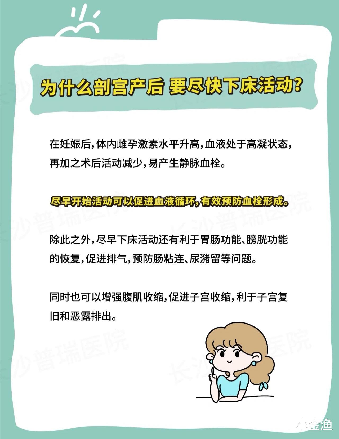 你可能会问,刚挨了一刀,身体虚弱得不行,为什么非要这么早下床呢?这可不是医生在刁难你,而是有非常重要的医学道理。首先,剖宫产手术后,我们的身体处于一种“高凝状态”,血液比平时更容易凝固,如果长时间躺在床上不动,血液流速变慢,很容易在腿部形成血栓。一旦血栓脱落,可能会引发非常危险的后果。尽早下床走动,腿部肌肉的收缩就像一个个小泵,能推动血液流动,有效预防血栓。其次,手术和麻醉会让我们的肠道暂时“罢工”,蠕动变慢,导致肚子胀气、不舒服。尽早下床活动,能刺激肠道“醒过来”,帮助尽早排气,还能预防肠粘连,让你能早点吃饭,恢复体力。最后,适当的活动还能促进恶露排出,帮助子宫更好地收缩恢复。所以,这痛苦的第一步,其实是通往快速康复的关键一步。