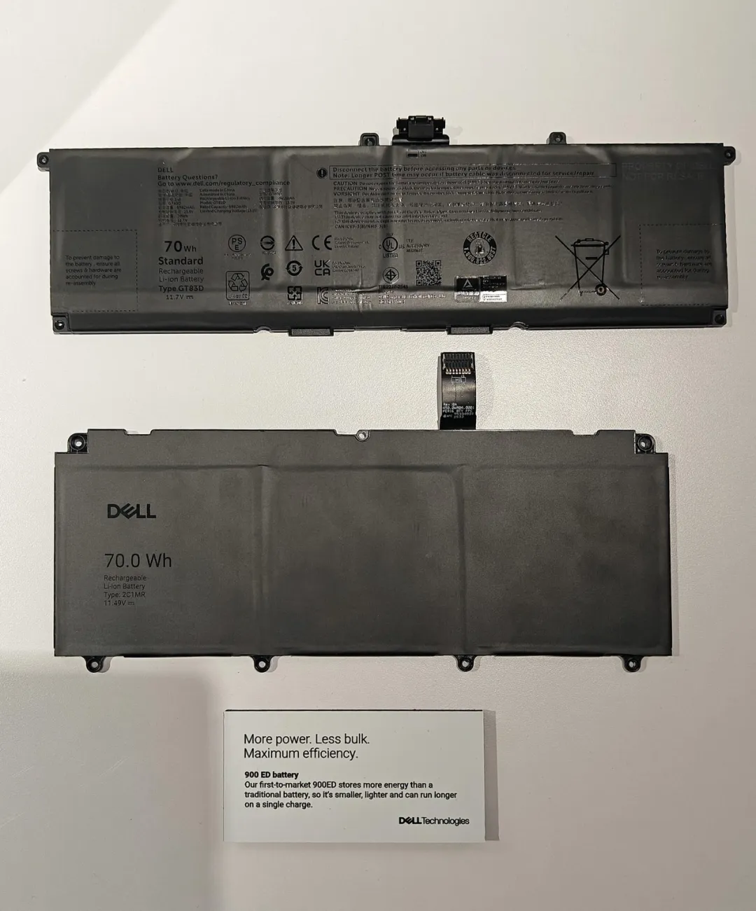 在全XPS上,还引入了更高电池密度的70Wh电池,密度达到900ED,不仅体积更小、重量更轻,而且单次充电的续航时间更长。