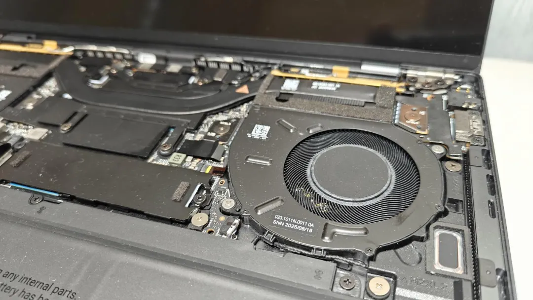 为充分释放处理器性能,戴尔对散热系统进行了全面升级。这款风扇是戴尔迄今采用尺寸最大、厚度最薄的风扇,气流通过效率更高,在高性能状态下依旧能够兼顾高散热、静音与长续航的需求。