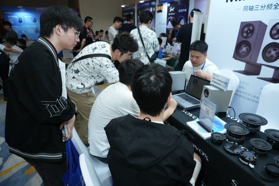 展会两天,索威展台始终人气高涨,前来试听、咨询的观众络绎不绝。工作人员耐心地为每一位观众讲解产品特点,引导大家体验MiniMax3系列的声音表现。