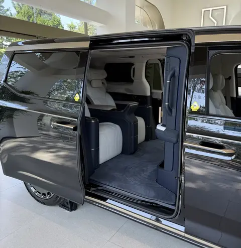 座椅是核心。官方资料显示,这两个独立座椅不仅具备全面的电动调节、加热、通风、按摩功能,更在材质、工艺和人体工程学上对标顶级豪华轿车。宽大的中央通道被取消,取而代之的是一个功能丰富的固定式中央岛台,集成了储物、杯架、电动抽屉等,形成了私密的环绕式座舱布局。