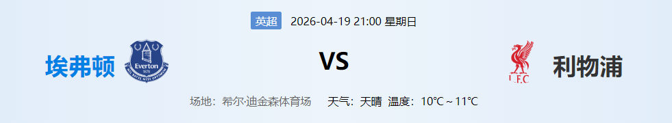 分析:利物浦周中欧冠消耗大,客场疲软,德比战意存疑。埃弗顿新主场首秀,有望力保不败。