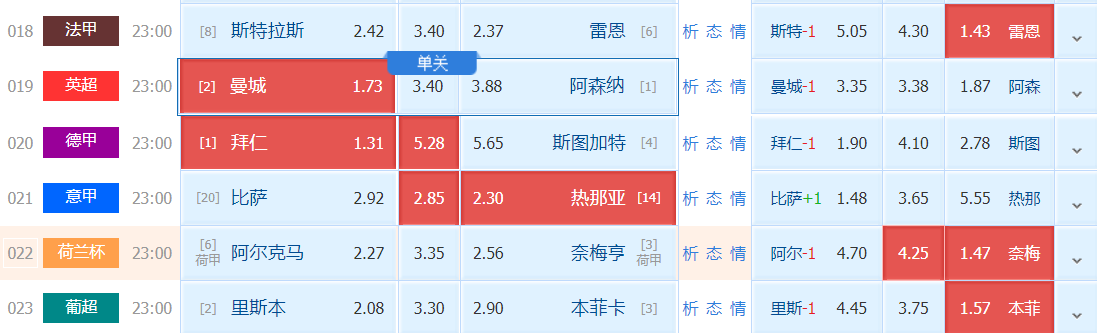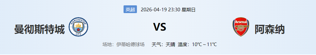 分析:天王山之战,曼城必须取胜才有争冠希望。阿森纳客场只需不败即可掌握主动。曼城主场近期强势,看好主队。
