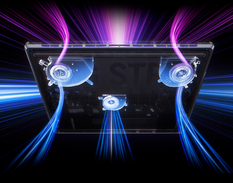 强悍的性能持续输出,离不开高效散热系统的支撑。ROG 魔霸新锐 2025 采用冰川散热架构 3.0 增强版,由三风扇内吹设计、三明治冰翼鳍片、端到端均温板组成散热模组,搭配 CPU 二代暴力熊液金导热材料,大幅提升导热效率。配合立体进风与贯穿出风设计,高负载场景下核心温度稳定可控,即便长时间游戏,性能表现也不会缩水。