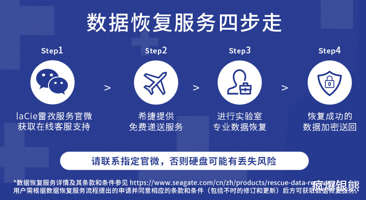 不管什么硬盘都有意外数据丢失损坏的可能,为了应对用户重要数据丢失的风险,雷孜LaCie也为这款硬盘提供了3 年内一次免费的原厂数据恢复服务。这项专业服务由顶级数据恢复专家团队提供,能够最大程度保留硬盘中的数据,用户的数据恢复成功率高达 90%。此外,恢复后的数据会被加密返还,确保用户隐私得到严格保护。