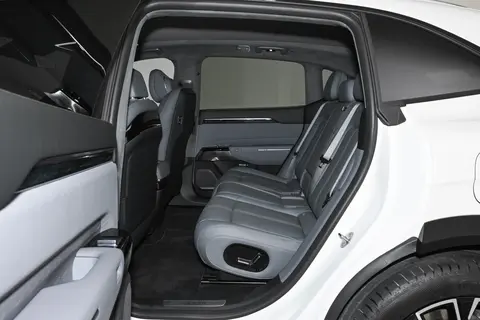 在空间方面,焕新极氪7X是基于SEA浩瀚架构打造的,空间利用和配置都特别有诚意。它的车身尺寸是长4825mm、宽1930mm、高1656(1666)mm,轴距为2925mm,这个轴距在同级别里算很优秀的了,为宽敞的内部空间奠定了前提和基础。实际体验时,身高175cm的人坐前排,把座椅调到合适位置,头部还有一拳多的空间,腿也能伸开,一点不局促。保持前排座椅不动,再坐到后排,头部空间同样有一拳左右,腿部空间大概两拳,就算长途坐车,也能舒舒服服地伸腿,不会觉得憋屈。车内得房率达到83.34%,后排腿部空间有1187毫米,配上可调节座椅,怎么坐都舒服。后备厢容积有905升,还有40处储物空间,全家长途出行带行李、小孩的玩具、婴儿车啥的,都没问题。把后排座椅放倒,容积能拓展到1978L,搬家具、装露营装备,甚至是自行车,都能轻松装下,实用性拉满。座椅用的是NAPPA全粒面头层真皮,摸着特别细腻。靠背是8层填充结构,靠背和坐垫都有25mm的慢回弹海绵,密度高,弹性好,坐上去既能支撑住身体,又不会觉得硬。前排座椅支持通风、加热、记忆、按摩功能,还能14向电动调节,座垫能拉长55mm,不管是大长腿还是小个子,都能找到舒服的姿势。后排还有座椅滑轨,这在这个价位的车里可不常见,能前后调,想给后备箱腾空间或者让后排更宽敞,都能自己调,特别灵活。座椅填充物软硬度刚好,支撑性和包裹感都兼顾到了,坐久了也不累。