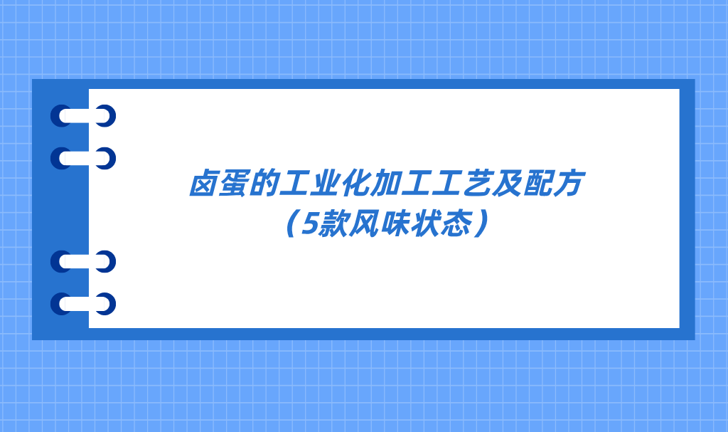 砂糖4.5%+食盐2.5%+味精0.3%+五香料4.0%+肌苷酸与鸟苷酸0.016%+黄酒3%~6%。其中五香料由八角、桂皮、小茴、甘草、砂仁、花椒、茉莉花茶、丁香、草果、姜、蒜、葱按12∶8∶6∶4∶4∶3∶3∶3∶3∶6∶20∶30~40配比而成,用此调味配方卤制的蛋五香和谐、突出、丰满、浓郁,口味咸甜适口,兼有鲜香。