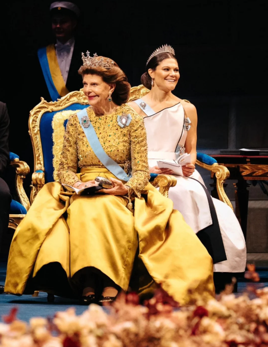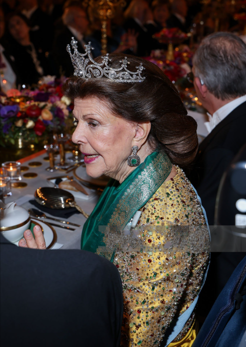 12月10日西尔维亚王后出席2025年度诺贝尔颁奖典礼;让人没想到的是瑞典王后比女王储维多利亚闪耀多了,还有精致盘发也加分不少,新造型高贵典雅不说,还美得光彩照人!