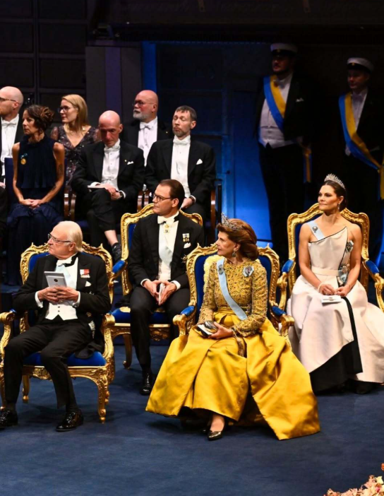 八旬西尔维亚被媒体称为“最美王后”,新行程是出席诺贝尔颁奖礼与晚宴;她在颁奖礼上选择一件镶钻礼服裙,而且颜色是明艳的黄,一身高定礼服裙穿在身上佩戴皇冠,彰显王后高贵气质,还优雅减龄!