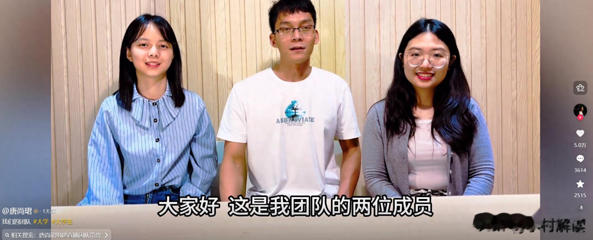 但在昨天开始他宣布要开始带货了,他在抖音发布的视频是和同校的两位女生一起。
