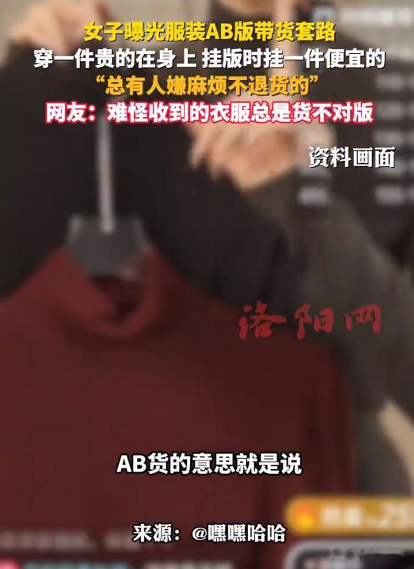 有些平台他是明着告诉你,我就这么便宜,质量可能不好,但是直播间就不一定了,你看着挺好的,拿到手却完全不一样。才有网友爆料说直播间专门搞AB版。