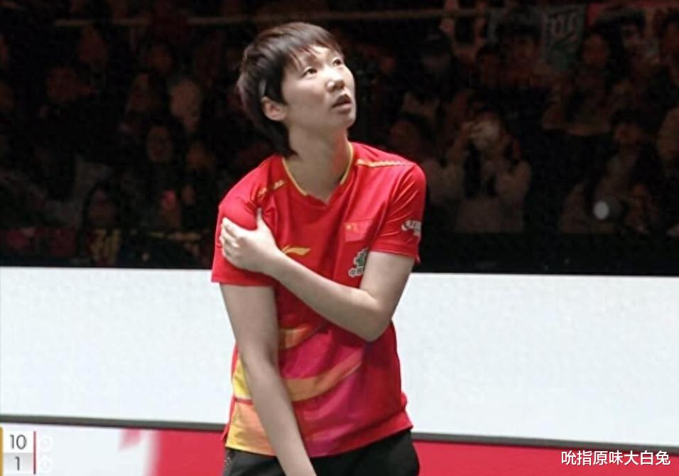 最后从技战术层面分析,王曼昱可能轻敌了,第一局打的就很胶着,王曼昱以12-10赢球,伊藤美诚有备而来,第二盘了解了王曼昱的习惯打法,连续进攻,王曼昱仅用了一个反手发球也被伊藤美诚快速破解,第二局王曼昱被逆转确实是不在状态,王曼昱在第三局11一2大比分赢伊藤美诚才是正常水平,第二局王曼昱如果是伤病复发的话,间隔不到一分钟不会好的那么快,并且最后又与蒯曼打女双快速下班,实际王曼昱第二局单打比赛,摸肩可能是一种下意识的动作,但肯定也受一些伤病影响。