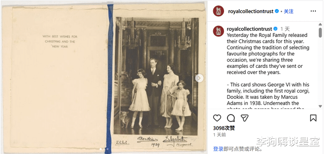 这一举措也促使皇家收藏信托(Royal Collection Trust)深入挖掘王室那些被遗忘的旧贺卡,其中就包括查尔斯已故母亲伊丽莎白二世女王的一张。在 Instagram 发布的系列照片中,第二张曝光的照片拍摄于 1949 年 —— 彼时伊丽莎白尚未登基,还是公主身份,照片中她抱着自己的长子(即如今的查尔斯国王)。