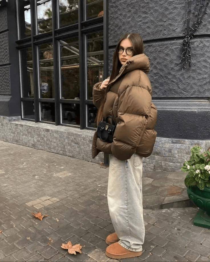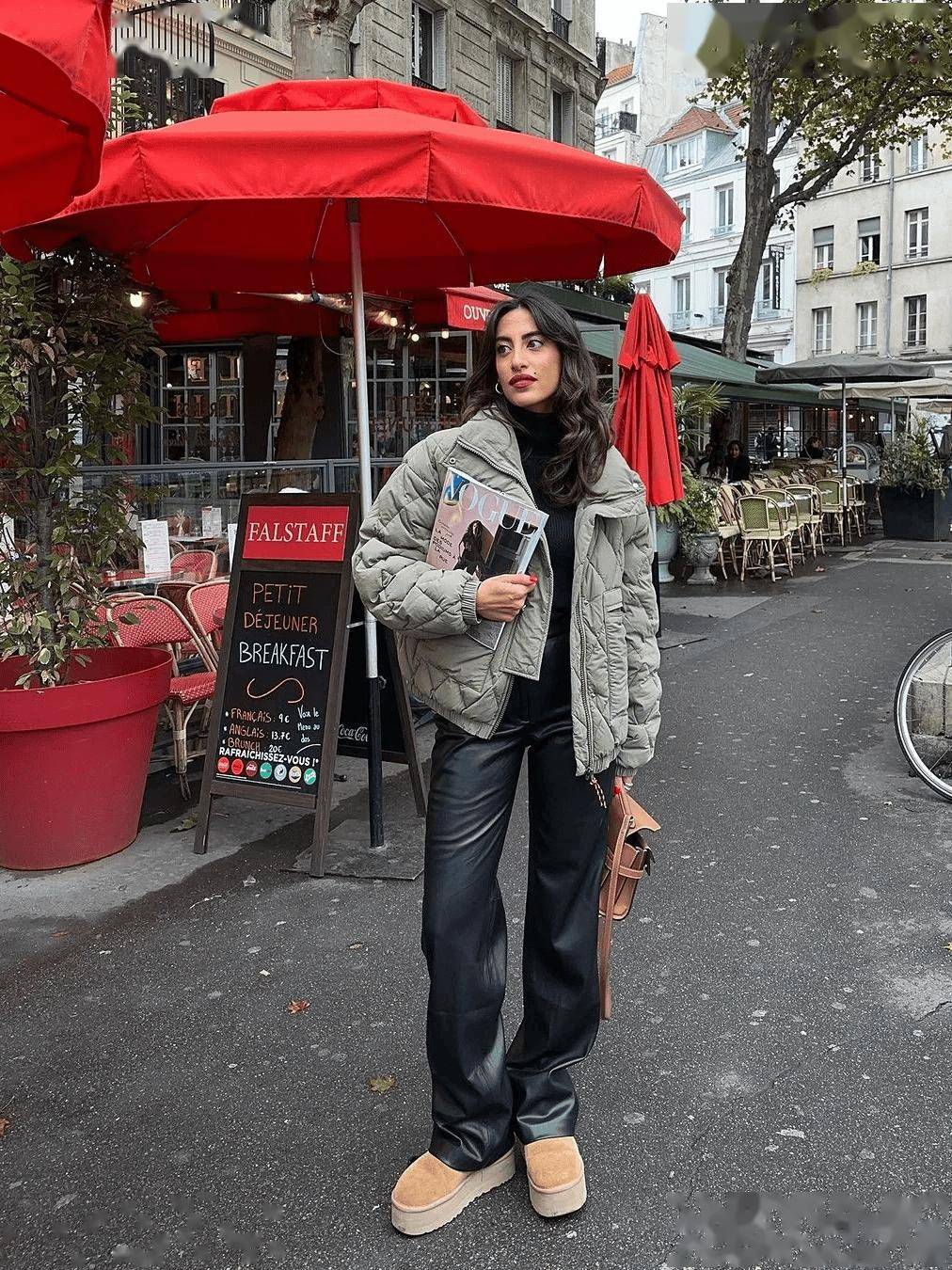 阔腿裤给予了双腿最大的自由,而羽绒服则提供了拥抱式的温暖。当它们结合,便构成了一座移动的“舒适堡垒”,让你在冬日里能自在地活动,无拘无束。