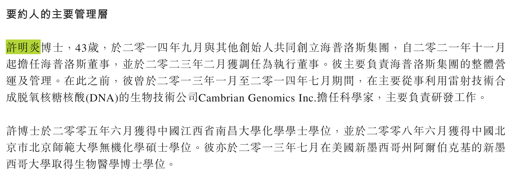 2014年,许明炎与其他创始人共同创立了海普洛斯,自2021年11月起担任海普洛斯董事,于2023年2月获调任为执行董事,主要负责整体营运及管理。