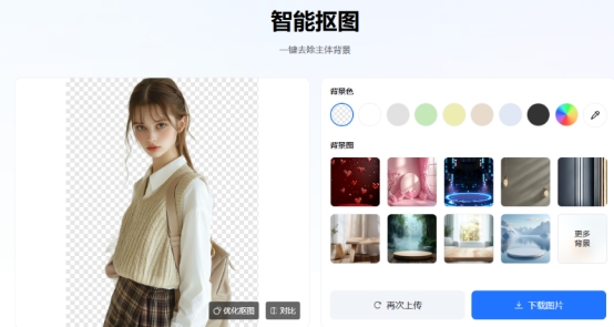 美图秀秀是一款简单易上手的图像处理软件,其中最值得一提的就是它的人体智能抠图功能,在使用过程中只需点击一次“抠图”按钮,即可快速识别画面中的主体人物,并自动与复杂背景进行分离。抠图完成后,还可根据需要选择合适的背景替换或直接导出透明背景图。