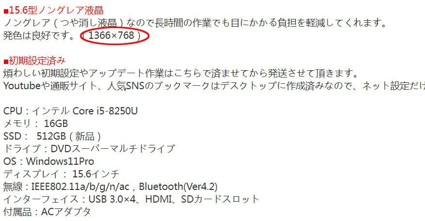 后来我去日本网站找了一圈,总算查到了屏幕分辨率,果然是1366x768分辨率的低分屏,受不了低分屏的人可以直接APSS了。