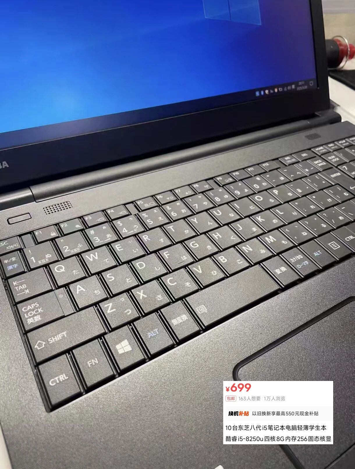 这是型号为东芝Dynabook B65/M的商务型笔记本,外壳看起来是塑料材质?当年定位撑死也就中端,日版机也是用日文键盘,最大槽点是短空格键。