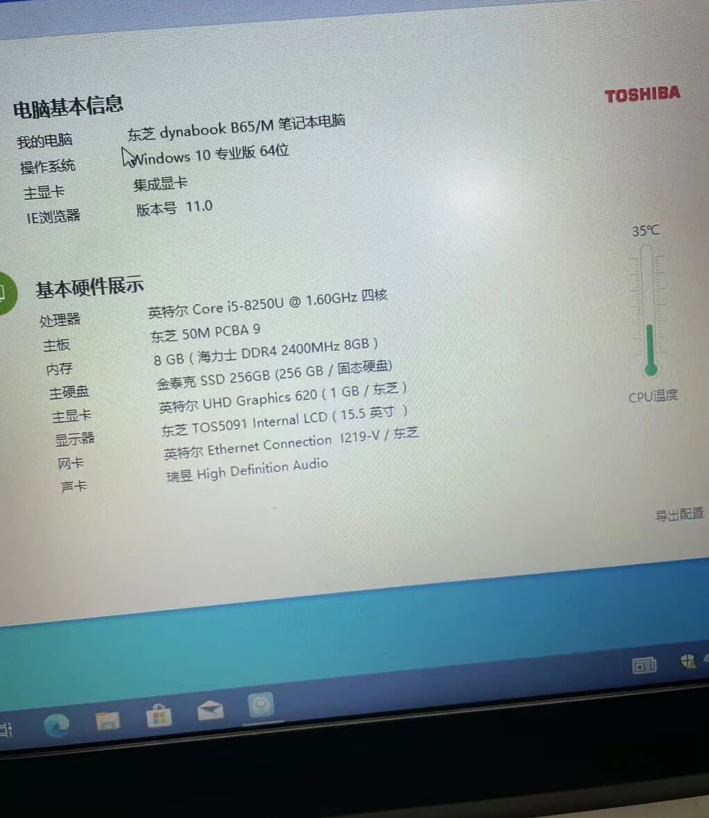 关键是配置还行,它采用了英特尔i5-8250U四核处理器,主频1.6GHz,这是最经典的八代低压U,用来办公没问题。内存是8GB的海力士DDR4,硬盘是250G的金泰克,预装Windows10专业版64位系统,这套配置就是办公本的常见组合。