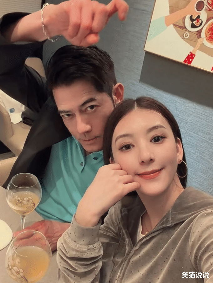 在照片中可以看到方媛和郭富城坐在一起,两人一起喝着香槟,方媛拿着手机对着镜头,歪着脑袋托着腮帮微笑拍照。而丈夫郭富城则是用手比了一个“9”的数字,他跟着方媛一起对着镜头歪着脑袋拍照。两人一起合照的样子看起来十分恩爱甜蜜!