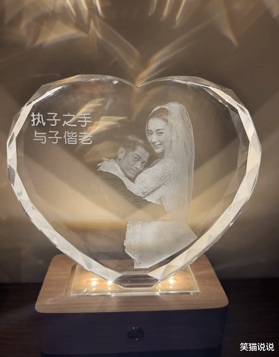除此之外,方媛也晒出了她和郭富城水晶牌,水晶牌雕刻着郭富城和方媛的结婚照片。