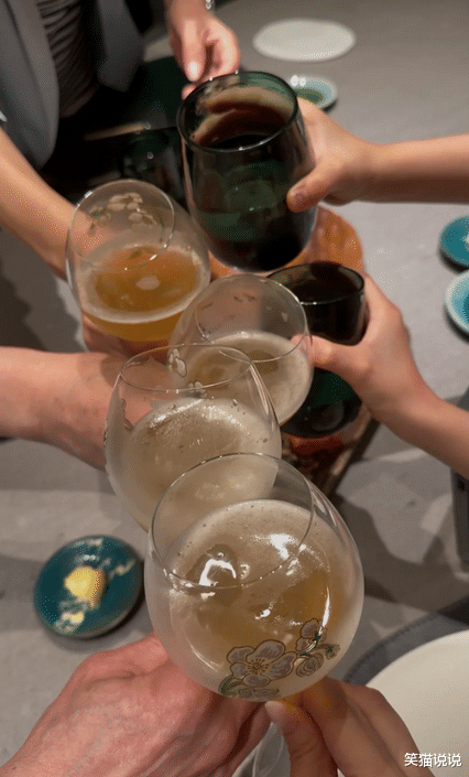 当然,方媛和郭富城的家人也一起庆贺他们俩的结婚纪念日,一家人举杯庆贺。在照片中也不难发现郭富城的两个女儿的手,一家人举杯庆贺,其乐融融,氛围感特别好。