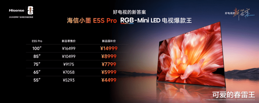 全新一代小墨E5S系列的发布,标志着海信已正式构建起行业内阵容最完备、技术最领先的RGB-Mini LED全明星家族阵列。依托乾照光电在RGB-Mini LED发光芯片领域的硬核实力与海信视像在自研画质芯片、光学显示架构上的深厚积淀,海信已打造出自主可控、完整闭环的RGB-Mini LED全链条技术生态,稳居行业引领地位。小墨E5S Pro的重磅发布,不仅以“新答案”重新定义了好电视的标准,更标志着RGB-Mini LED电视正式走向全民普及。