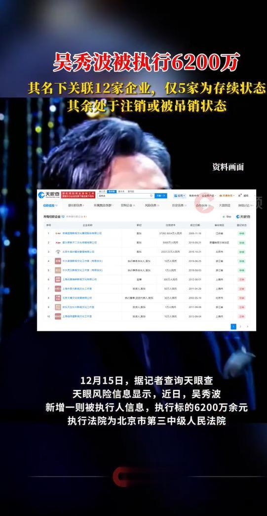 最近,吴秀波又迎噩耗,新增了一笔6200万余元的被执行人信息。