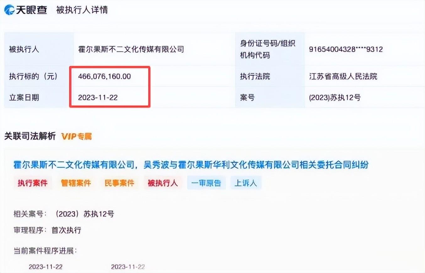 债务就像滚雪球一样越积越多:2023年11月,他和不二文化公司被强制执行4.66亿;2024年,因为知识产权合同纠纷,又被判赔2.16亿,名下公司4950万的股权被冻结。
