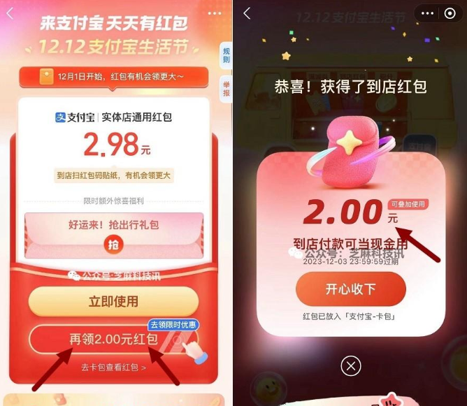 随手就是几元,支付宝付款的时候可以自动抵抵扣!领取的红包有效期为 3 天,红包消费掉,次日才可以继续领取(每天最多一个)!