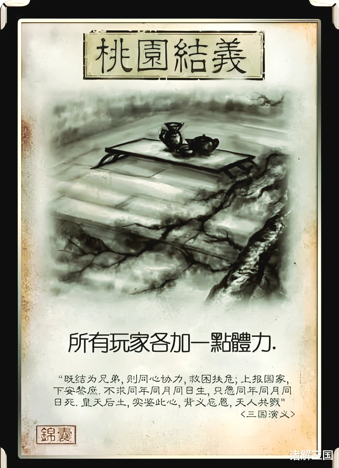 桃园结义的效果是"所有角色回复1点体力",听起来很美好——大家一起回血,和气生财嘛。
