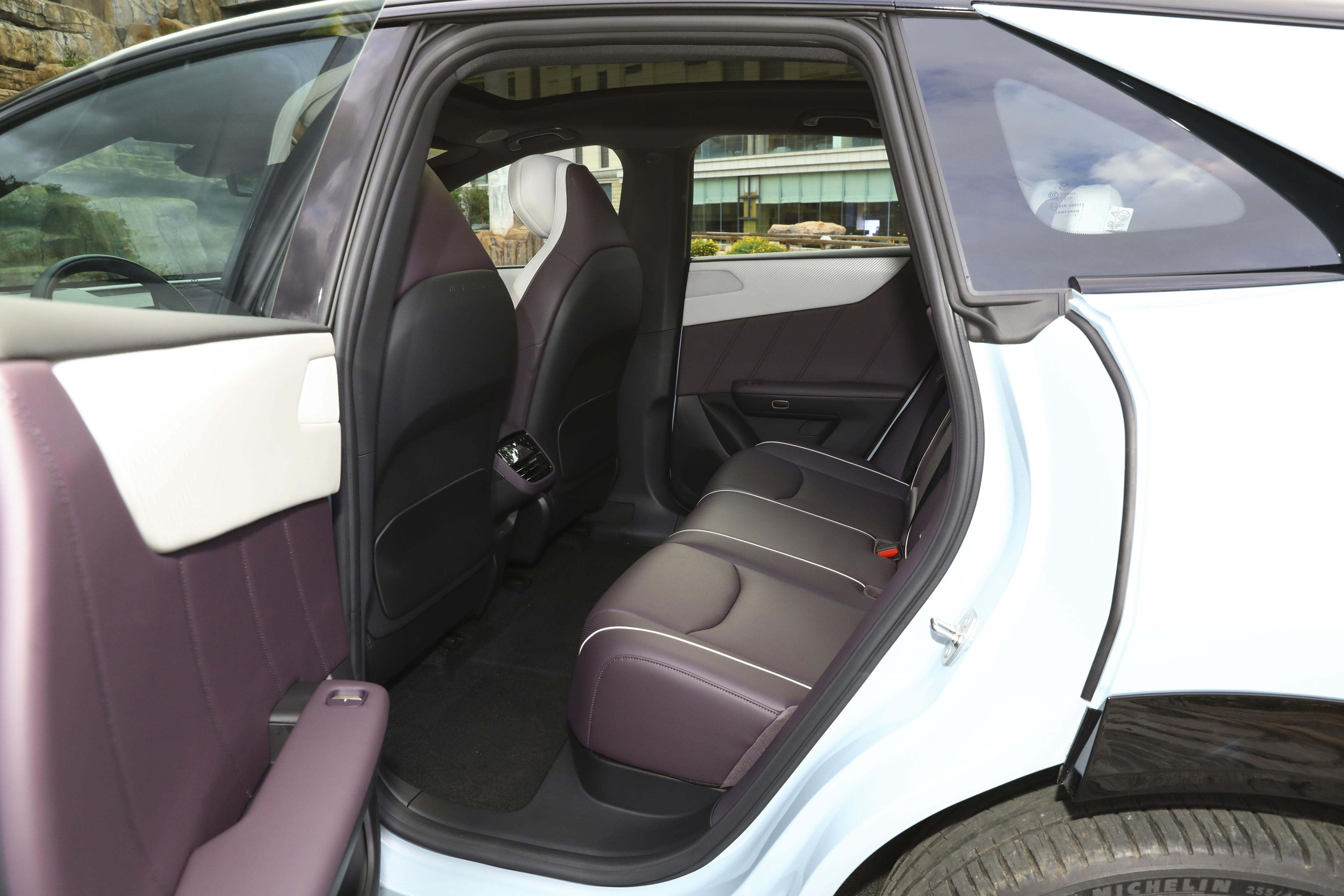 定位中型SUV,长宽高分别为4850*1935*1620毫米,轴距则是达到了2902毫米,跟传统马自达燃油车相比,它的内部空间可以用奢侈来形容,实测数据,车内后排膝部空间在122毫米,伸腿空间990毫米,即便是身高180厘米的乘坐者,在将前排座椅按照自身合适驾驶坐姿调整好,坐到后排,膝盖距离前排座椅还有2拳多的空间余量。后排地板平整,中间位置乘坐脚部宽裕。
