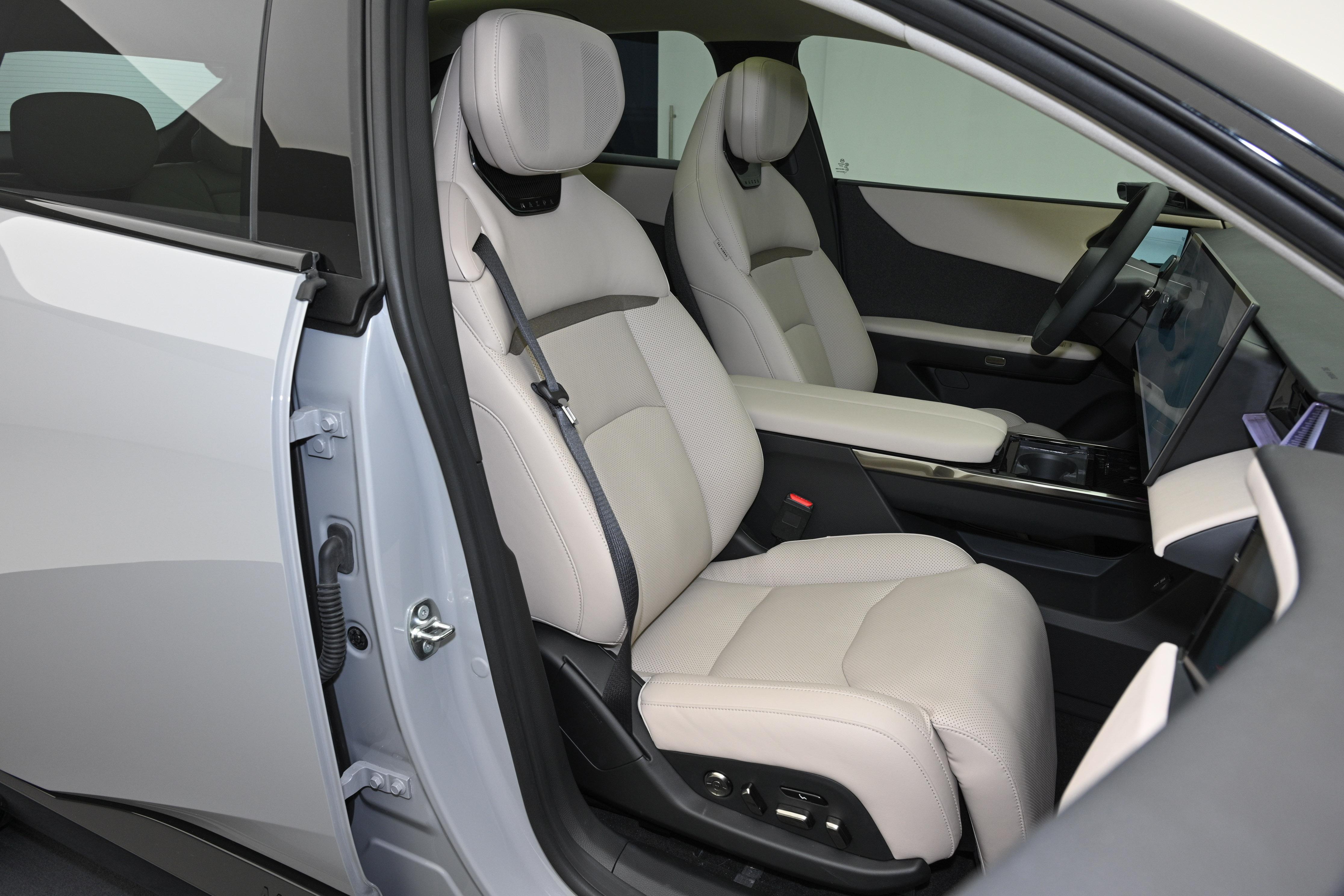 座椅根据人体工学设计,高配车型配备与麦格纳联合开发的双云感悬浮零重力座椅,十层结构设计,侧翼包裹性提升50%,能有效减少转弯时的身体侧倾。双120度零重力角度,支持多向电动调节和腿托调节,支持加热、通风和8点式按摩。