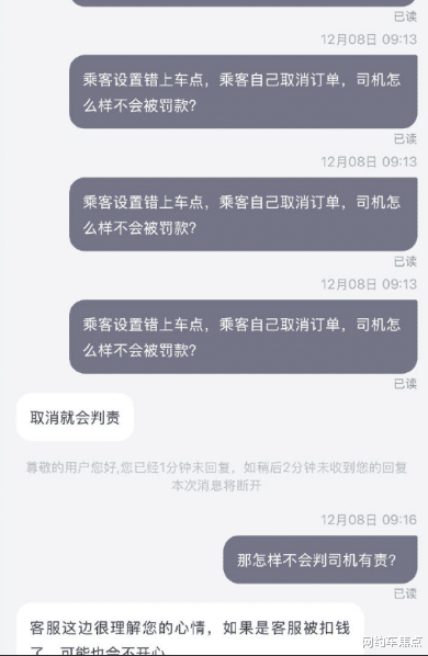 本以为这事儿跟自己没关系,没想到平台直接判他有责,还罚了钱。他找客服申诉,客服要求出示证据,司机表示打的电话没有记录,结果客服说 “取消就会被罚款”,再问翻来覆去都是套话,申诉压根没用。
